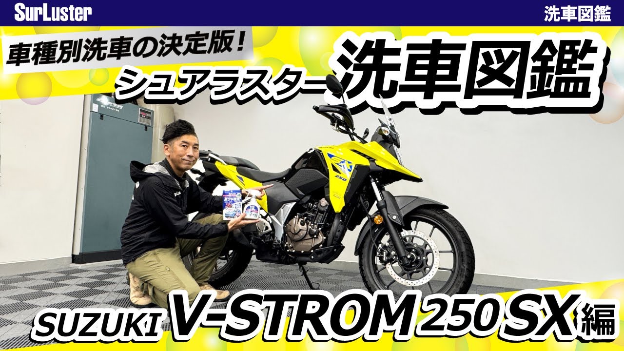 今回は、スズキが手掛ける軽量アドベンチャーバイクで、街乗りからロングツーリング、軽いオフロード走行まで楽しめる万能な『SUZUKI V-STROM 250SX(Vストローム250SX)』を洗車!