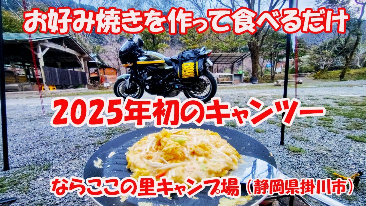 2025年初のキャンプツーリングは静岡県掛川市の「ならここの里キャンプ場」からスタート。ただお好み焼を作って食べるだけですけどwww