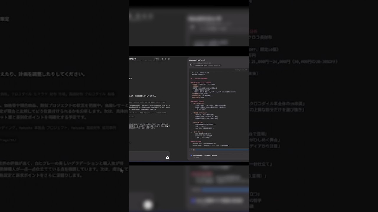 【実演】面倒なリサーチはAIに丸投げ!クラウドファンディングで成功するための競合分析からLP作成までを、わずか10分で完了させる禁断のテクニック。 #chatgpt #Manus #AIエージェント