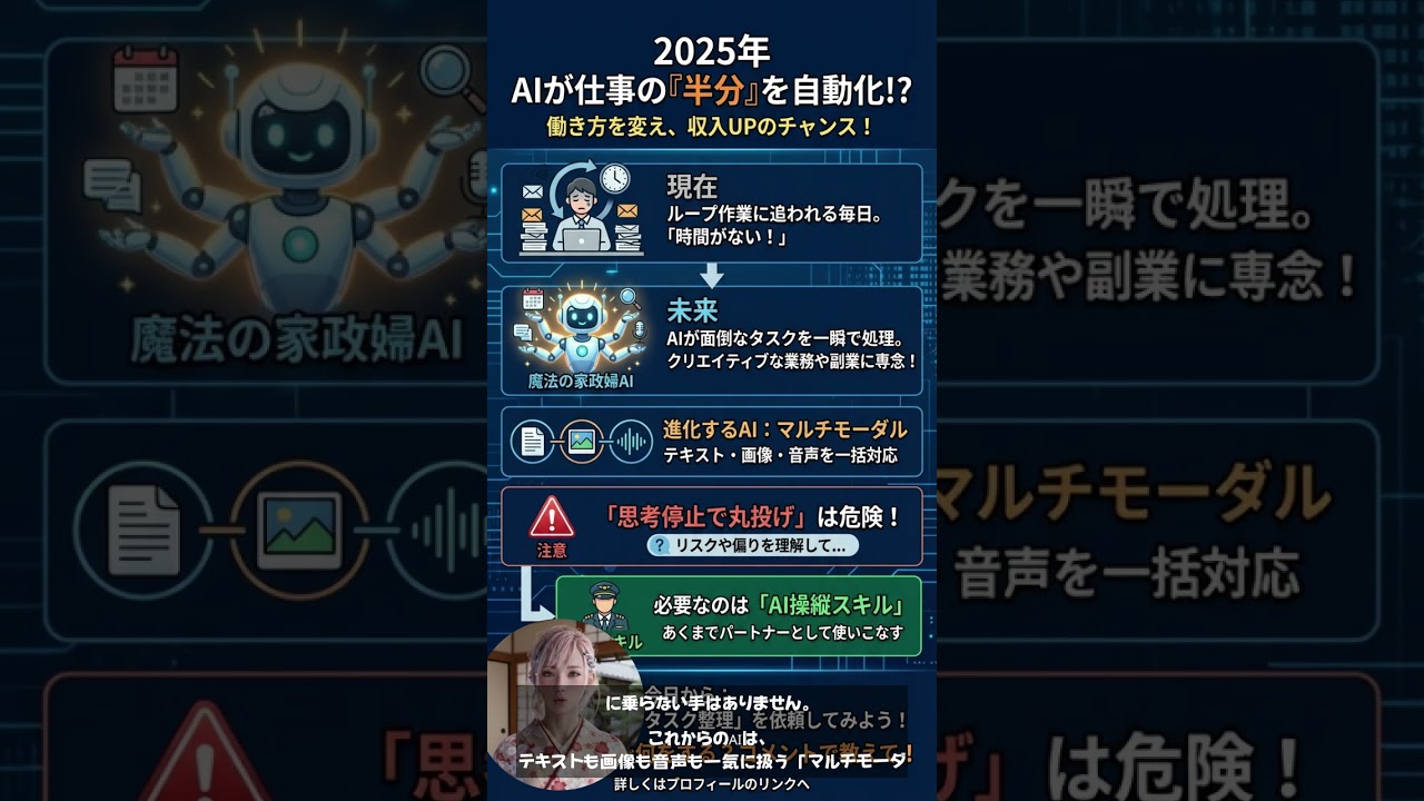 INFINITY情報局 ニュース 2025年、AIが業務の50%以上を自動化?!働き方激変の波を賢く乗りこなし、効率化と収入アップを掴む戦略を解説します。#生成AI #働き方改革 #業務効率化