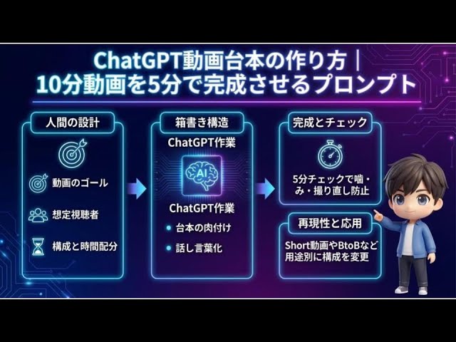 ChatGPT動画台本の作り方|10分動画を5分で完成させるプロンプト