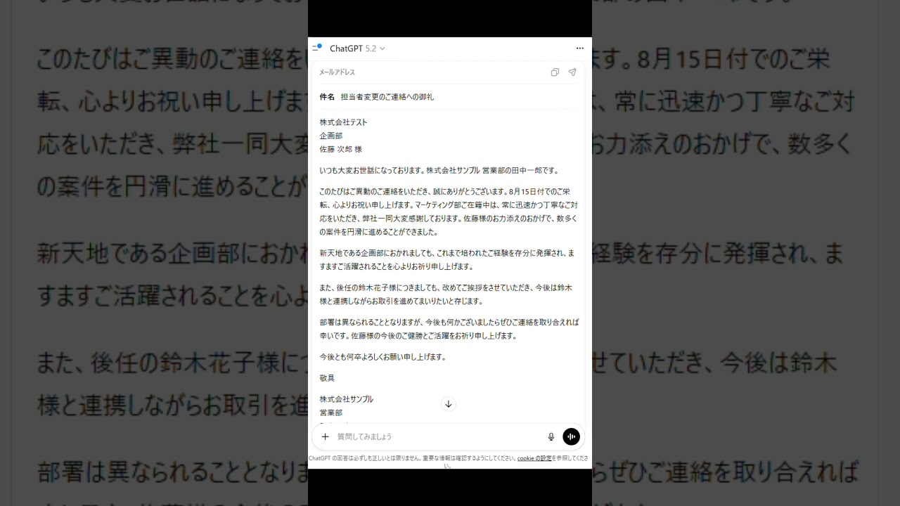 【ほぼテク ショート】ChatGPTで異動メールの返信文を考えるテクニック