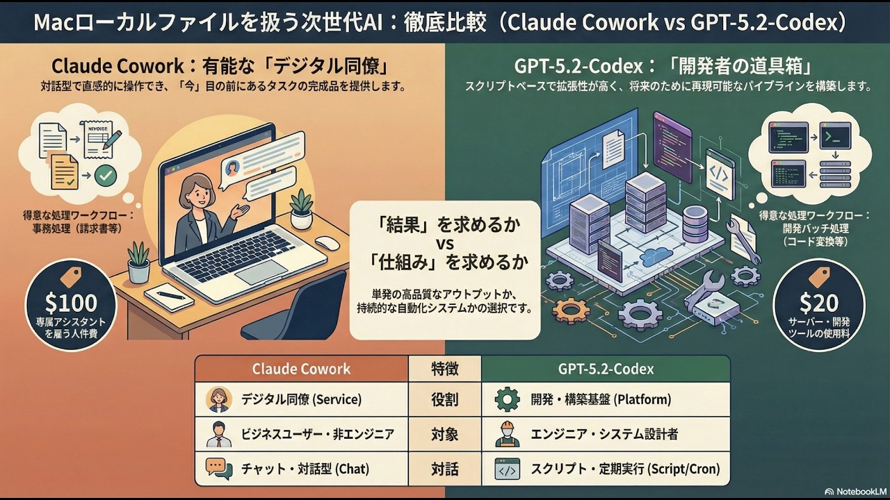 Macの中にあるファイルを直接操作できる次世代AI、「Claude Cowork」と「GPT-5.2 Codex」。