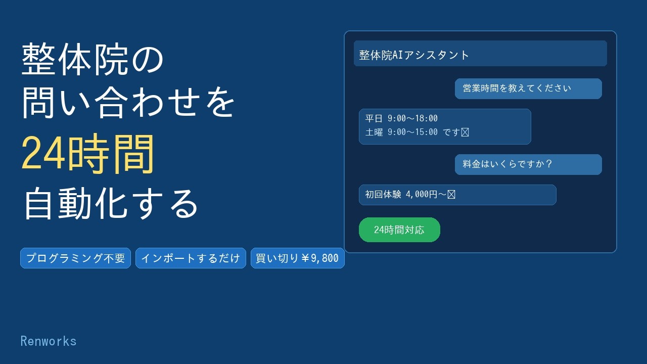整体院・マッサージサロン向けのAI受付チャットボットのデモ動画です。