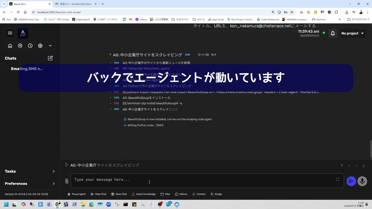 オープンソースのAIエージェント、AgentZeroを動かした動画になります。